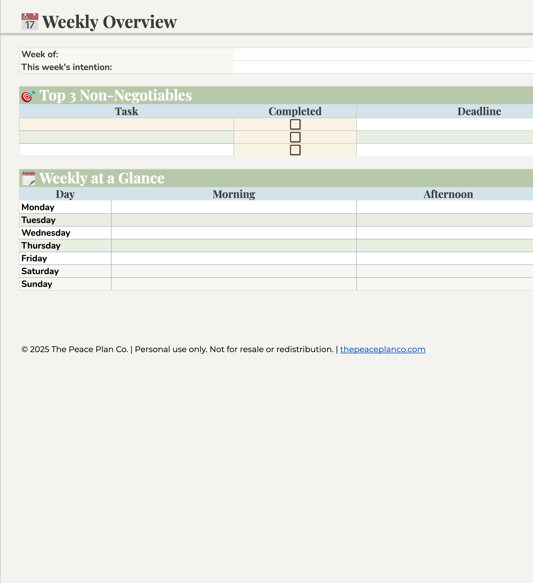 🌿 The Peace Plan Weekly Planner — by The Peace Plan Co.